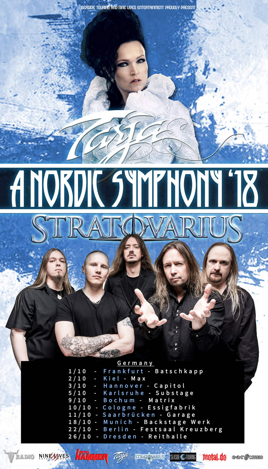 Nun haben sich diese beiden großen finnischen Ausnahmekünstler dazu entschlossen, gemeinsam auf Tour zu gehen welche unter dem Namen A Nordic Symphony ‘18 steht. Und nicht nur wer die Geschichte der beiden Acts kennt, wird sich vorstellen können, dass uns hier einiges mehr erwartet als nur einzigartige, herausragende Konzerte von Tarja Turunen und ihrer Band und Stratovarius!
