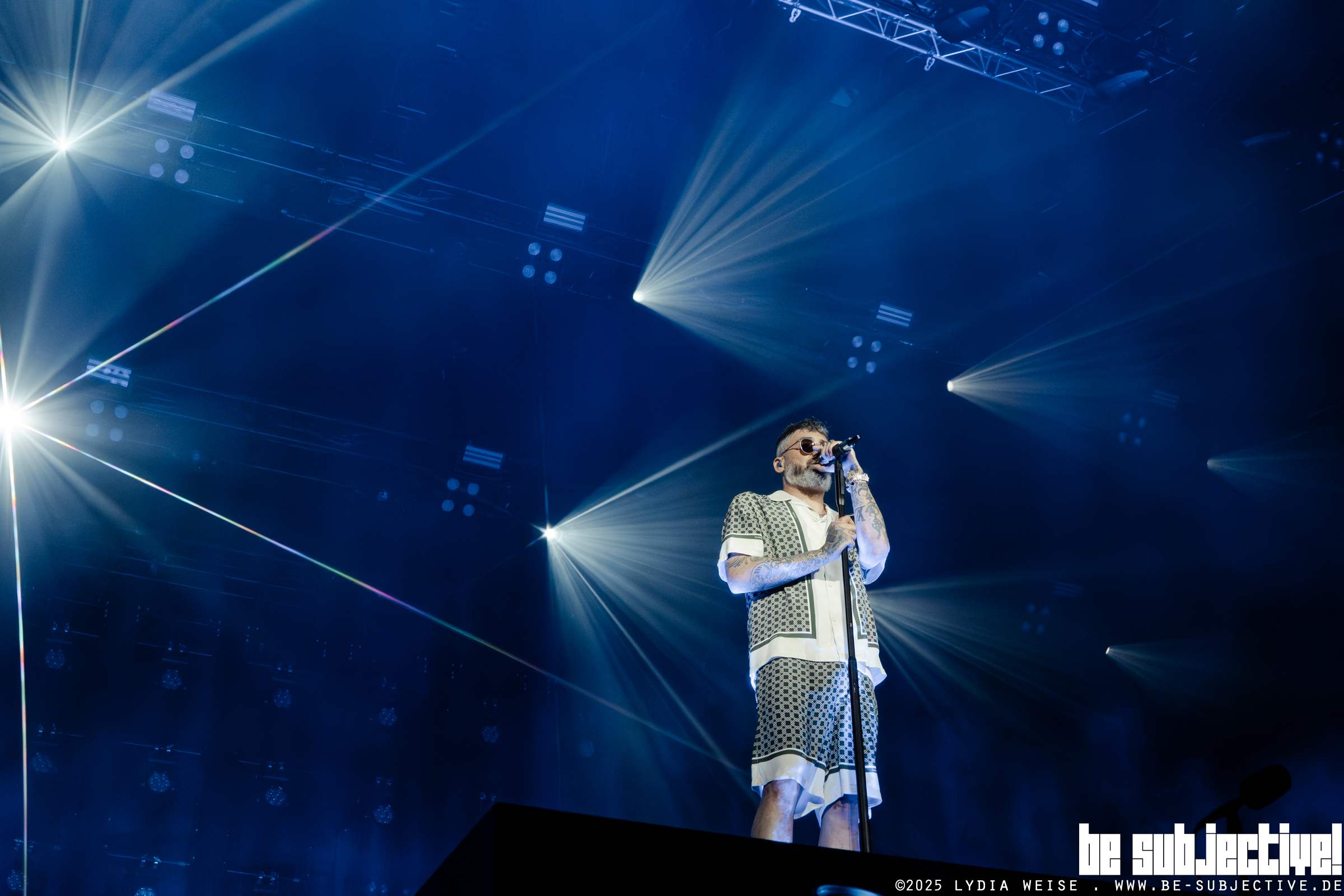 Von „Mein Block“ und „Mama hat gesagt“ über emotionale Momente bei „Bilder im Kopf“ bis zu aktuellen Hits spannte er einen Bogen über ein Vierteljahrhundert Musik. Die Chemnitzer sangen lautstark mit, feierten jede Ansage und machten die Wiese zu einem einzigen Meer aus Händen. Ein Song war das Konzert lang immer wieder Thema und da es sich die Menge mehrfach mit einem lauten „Dada dadaaaada“ gewünscht hat, schloß Sido sein Konzert mit dem beliebten Arschfi*** Song ab. Die Bühnenshow war gut inszeniert: ein klarer, druckvoller Sound, präzises Lichtdesign und ein Bühnenaufbau, der auch aus der Ferne beeindruckte. Man spürte, dass hier alles Hand in Hand lief – Künstler, Crew und Location bildeten eine perfekte Einheit.
